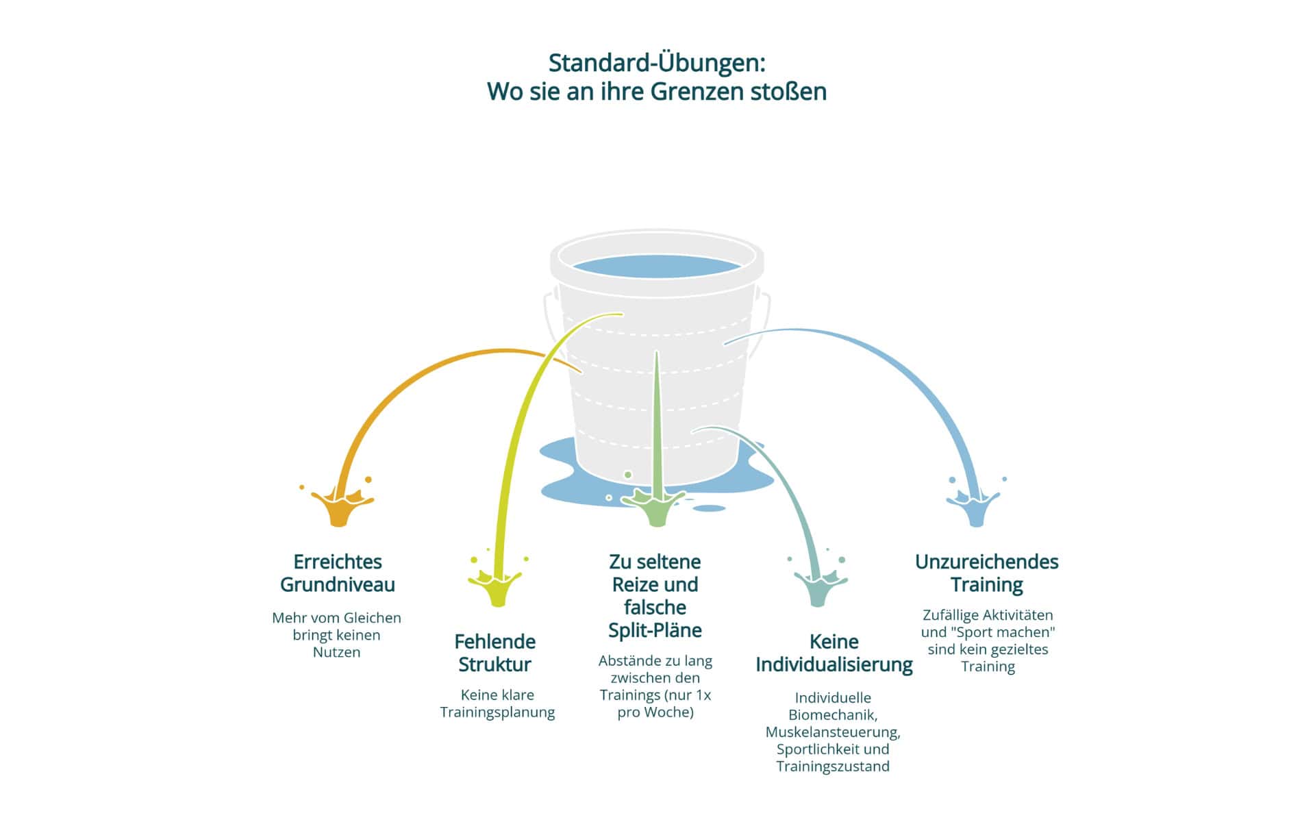Aber trotzdem bekommen alle das Gleiche: Die klassischen Core-Übungen. Die klassischen Theraband-Übungen. Die klassischen Beinpresse-Übungen.