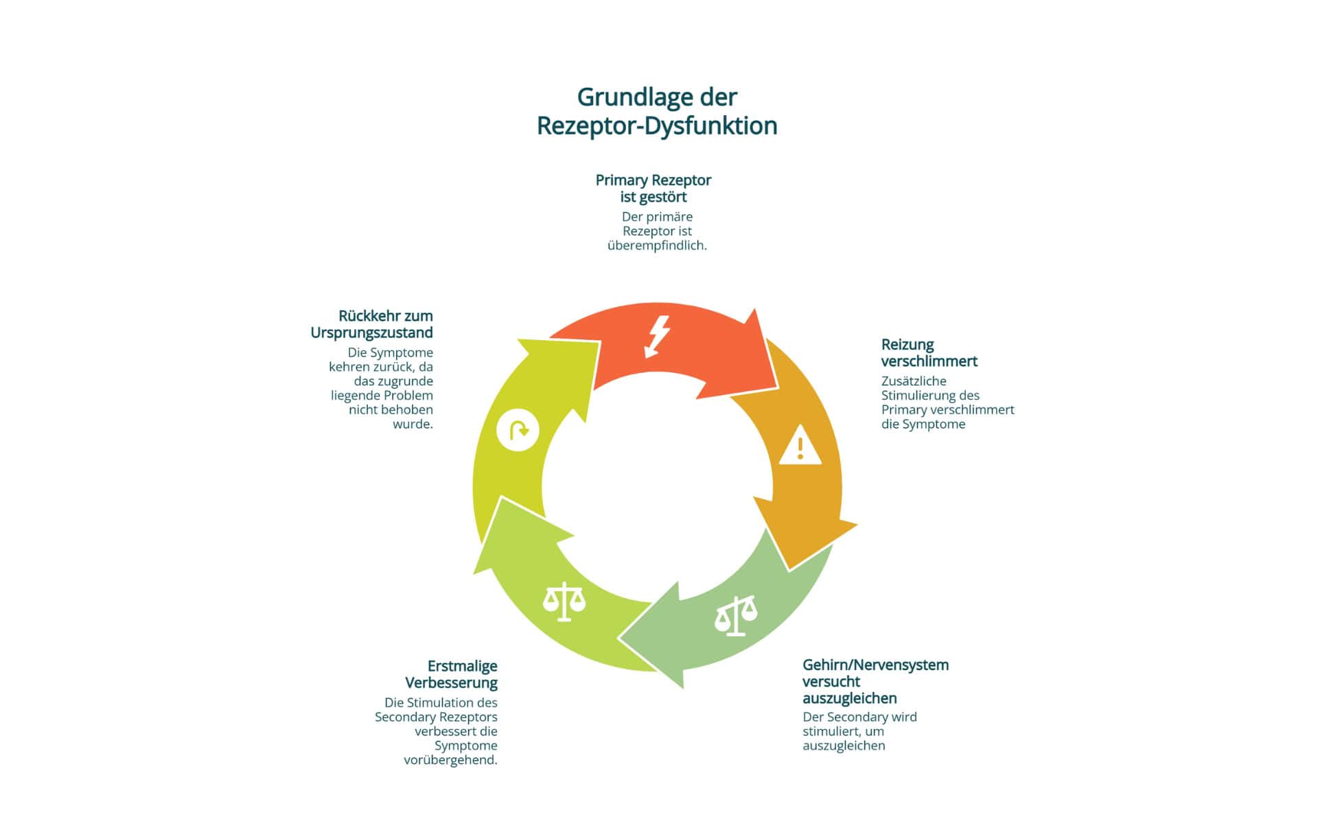 Wenn was mit einem Rezeptor nicht stimmt, mit dem sie verbunden sind, dann inhibieren Muskeln, obwohl es gar nicht nötig wäre. Oder sie werden hyperton (übertrieben angespannt). Beides ist schlecht für die Ausgewogenheit aller Muskeln zueinander.